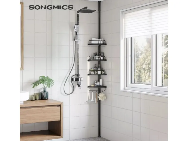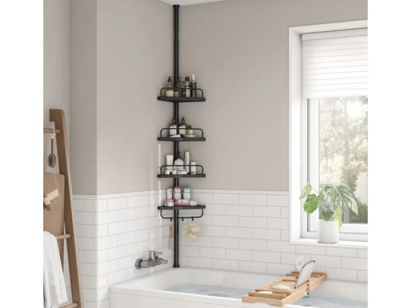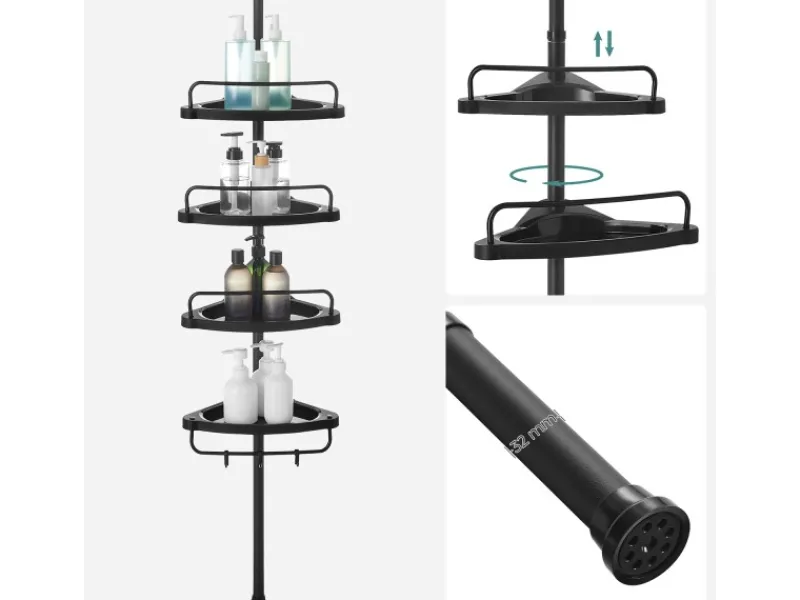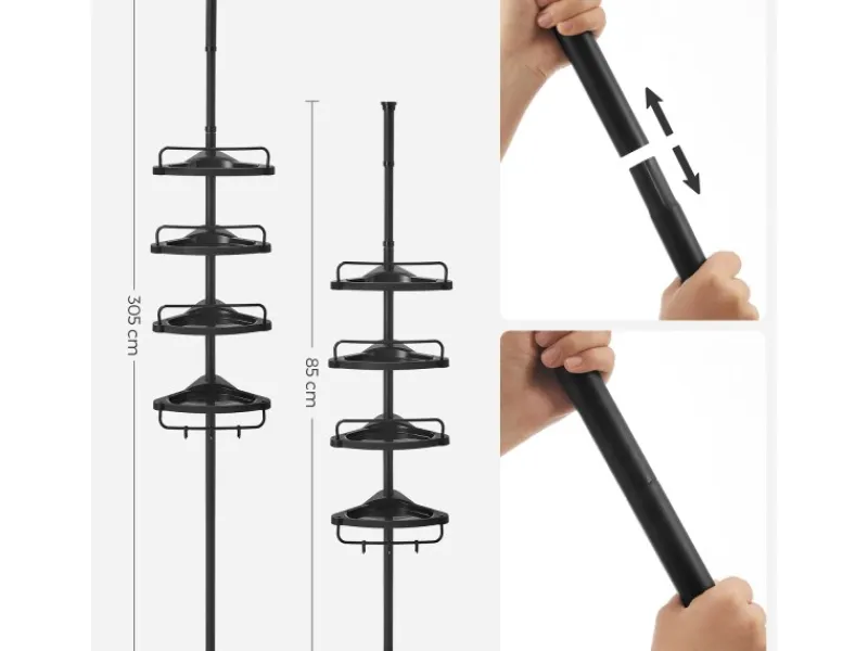 Das Duschregal ist in der Gesamthöhe zwischen 85 und 305 cm verstellbar, um sich verschiedenen Räumen anzupassen.