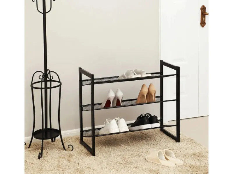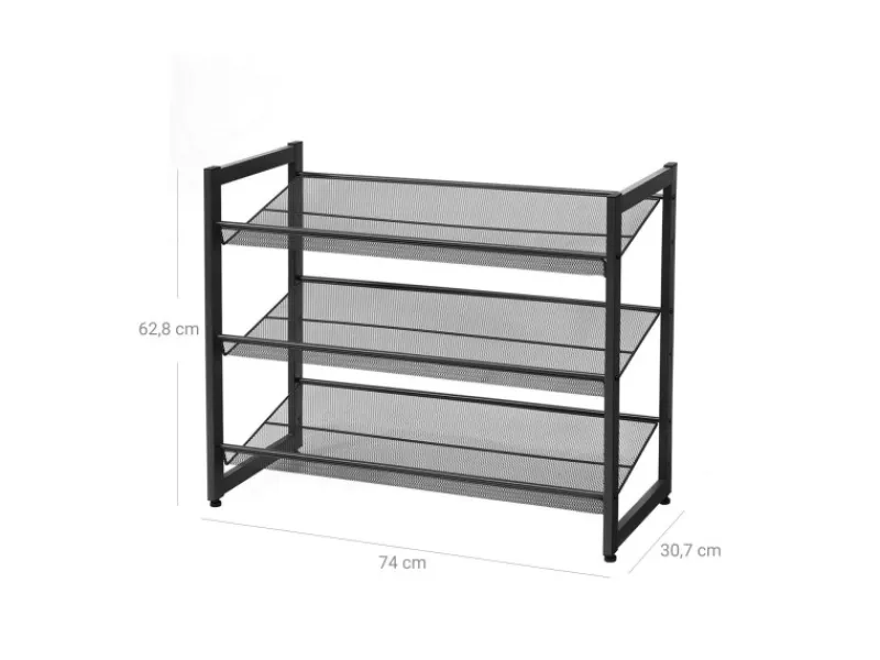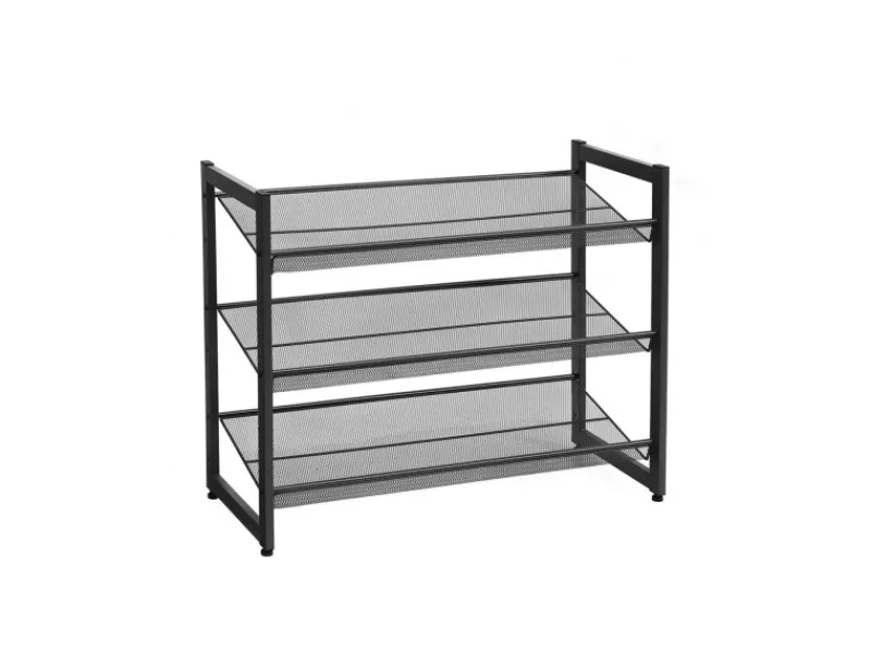 Die schwarzen, pulverbeschichteten Metallrohre dieses 3-stöckigen Schuhregals verleihen Ihrem Zuhause einen Hauch von Eleganz. Die verstellbaren Füße und der Metallrahmen sorgen dafür, dass sich die Stabilität dieses Schuhregals deutlich von der von Schuhständern aus Kunststoff abhebt. So bleiben Ihre Schuhe stets ordentlich und sauber an ihrem Platz.