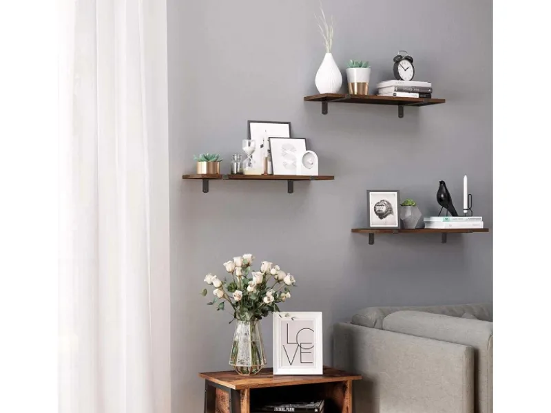Diese Schweberegale aus MDF der Klasse E1 verfügen über starre Halterungen, die eine maximale statische Belastbarkeit von jeweils 15 kg erreichen. Mit nur 3 Stück pro Schweberegal können Sie sie direkt an der Wand aufhängen, bevor Sie es bemerken. Ziehen Sie einfach die 4 Schrauben fest, um die beiden Halterungen am Regalbrett zu befestigen und fertig.