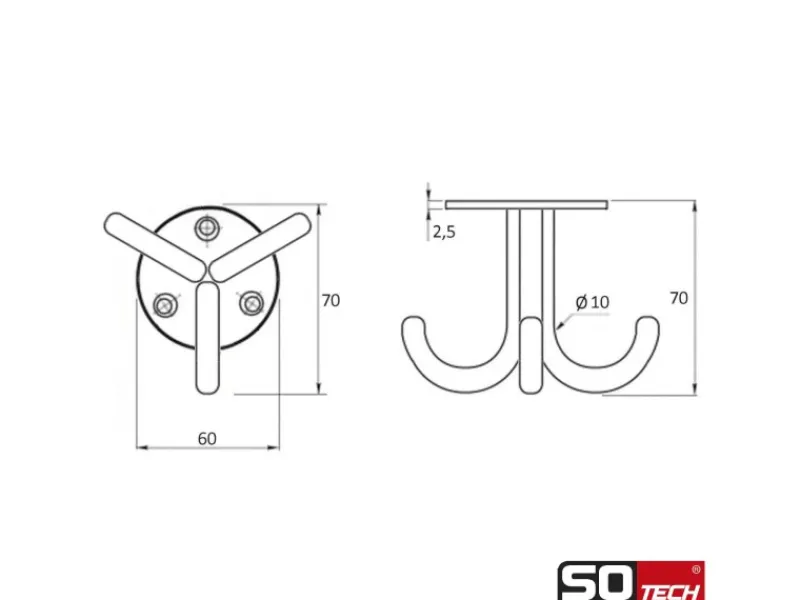 1 x SOTECH Dreifach-Unterbauhaken NELE III