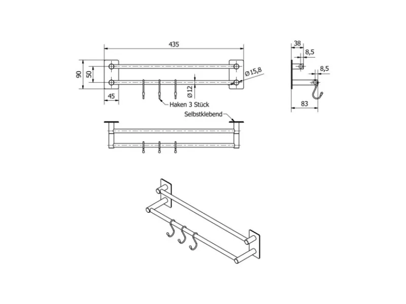 Schreibe die erste Bewertung für „SOTECH Selbstklebende Hakenleiste TALIDA Aus Edelstahl Länge 435 mm 2-Fach“