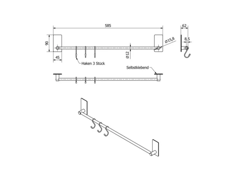 Schreibe die erste Bewertung für „SOTECH Selbstklebende Hakenleiste TALIDA Aus Edelstahl Länge 585 mm 1-Fach“