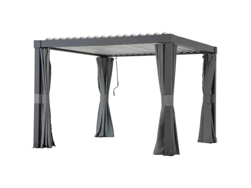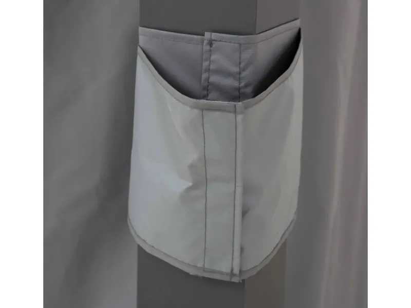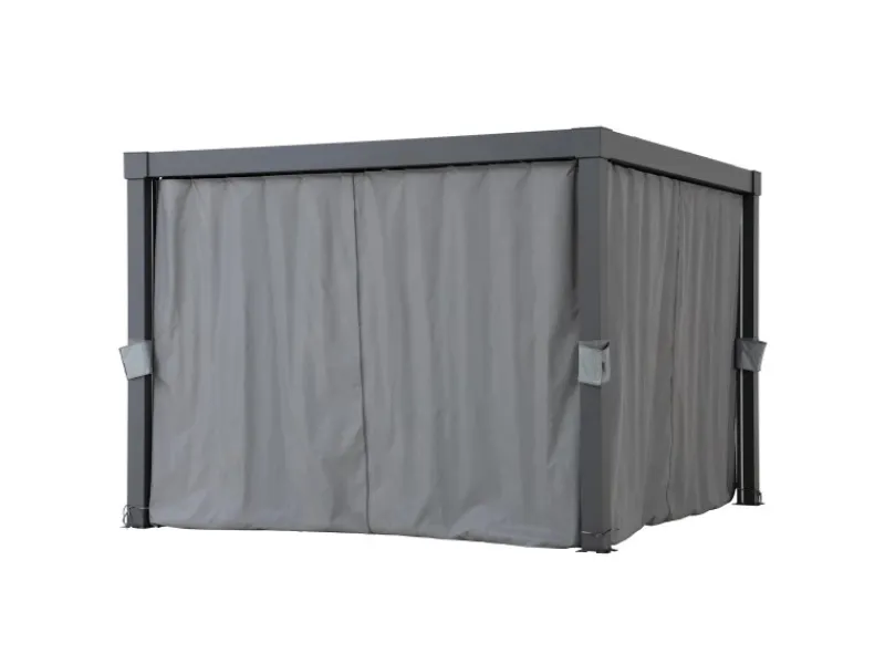 Die Vorhänge lassen sich mit der mitgelieferten Montagehardware mühelos an den doppelten Vorhang- bzw. Netzschienen befestigen, die Bestandteil ausgewählter Pergolen sind.