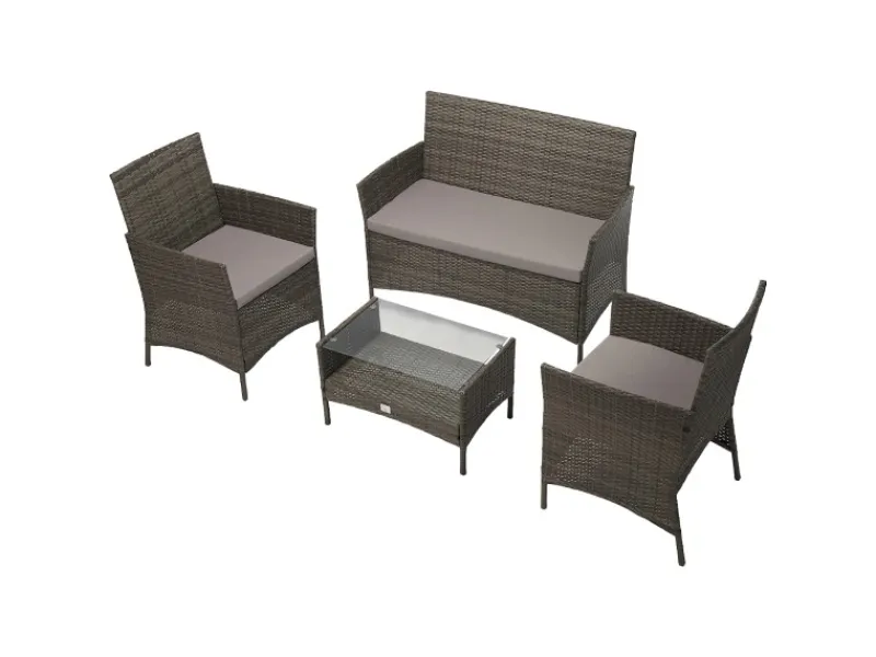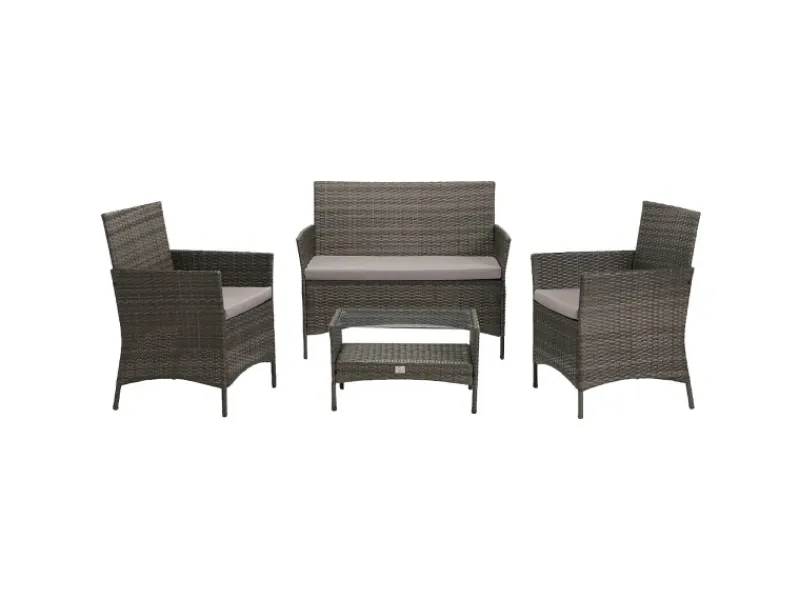 Die Kunststofffaser der Möbel ist hochwertig verarbeitet, Schmutz- als auch wasserabweisend. Handlich durch ihr geringes Gewicht, lässt sich die Garnitur leicht umstellen und transportieren.