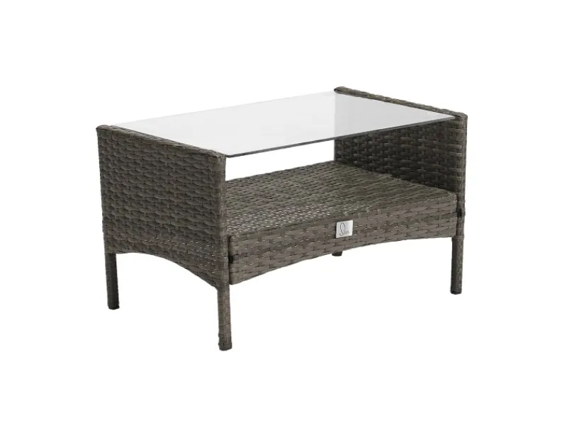 Dieses Möbelset ist ideal für die Nutzung im Freien. Besonders charmant ist der praktische Beistelltisch mit zwei Ablageflächen. Nutzen Sie die Glasplatte um Speisen und Getränke abzustellen, auf der unteren Ebene ist genügend Aufbewahrungsmöglichkeit für Zeitschriften, Bücher & Co.