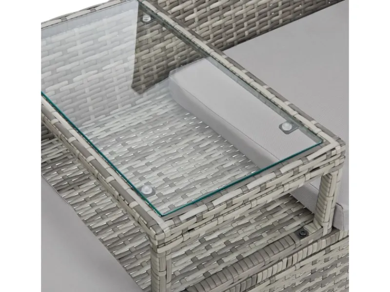 Gartenbank mit verstärkten Beinen und höhenverstellbaren Füßen – Integrierter Tisch mit Glasplatte