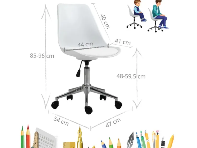 – Schreibtisch-Drehstuhl für Kinder – Ideal zum Entspannen oder Lesen – Gesamtmaße: ca. 54 x 47 x 84,5-96 cm (LxBxH) –
