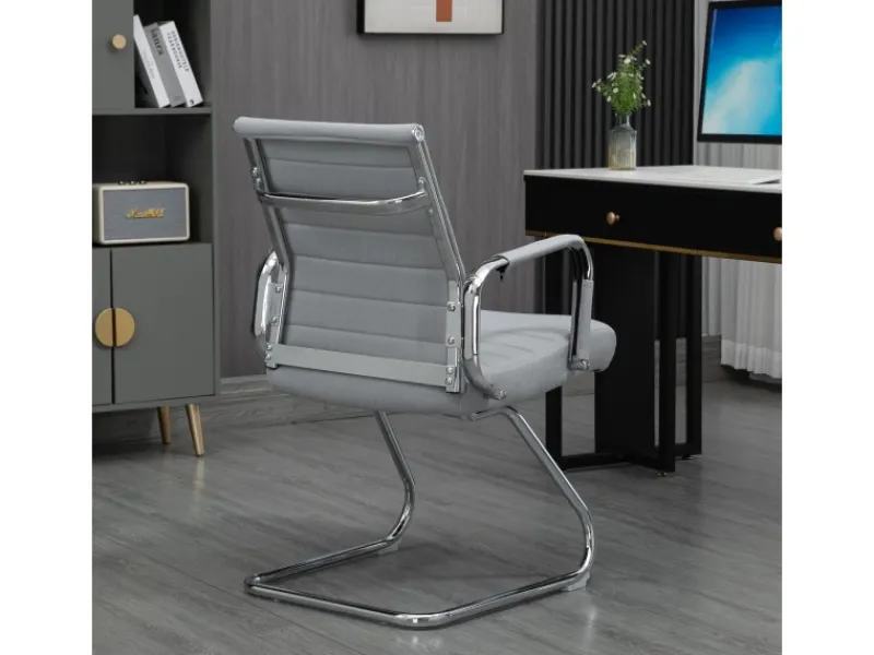 Den idealen Stand erhält der Konferenzstuhl ohne Rollen durch ein robustes Gestell aus verchromtem Stahl, welches dank seiner Bodenschoner jegliche Böden vor Kratzern oder Beschädigungen schützt.