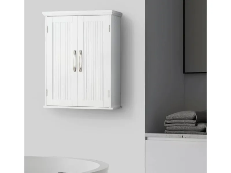 Stil Klassisches weißes Finish mit zwei flachen perlenbesetzten Shaker-Türen und