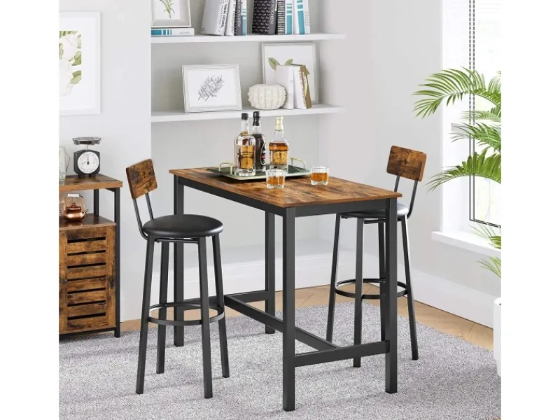 Rustikale Rückenlehne, schlichtes Stahlgestell und bequeme Sitzfläche