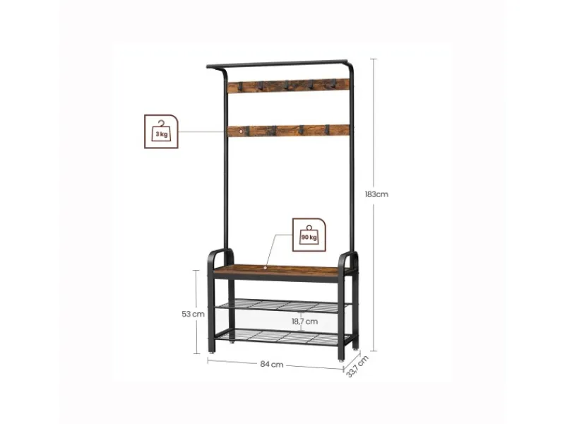 Kombiniert Kleiderstange, Schuhhocker, Schuhregal und Kleiderhaken
