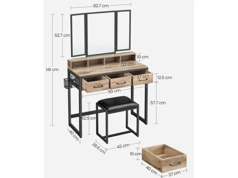 Großer Schminktischspiegel aus 3 klappbaren Teilen