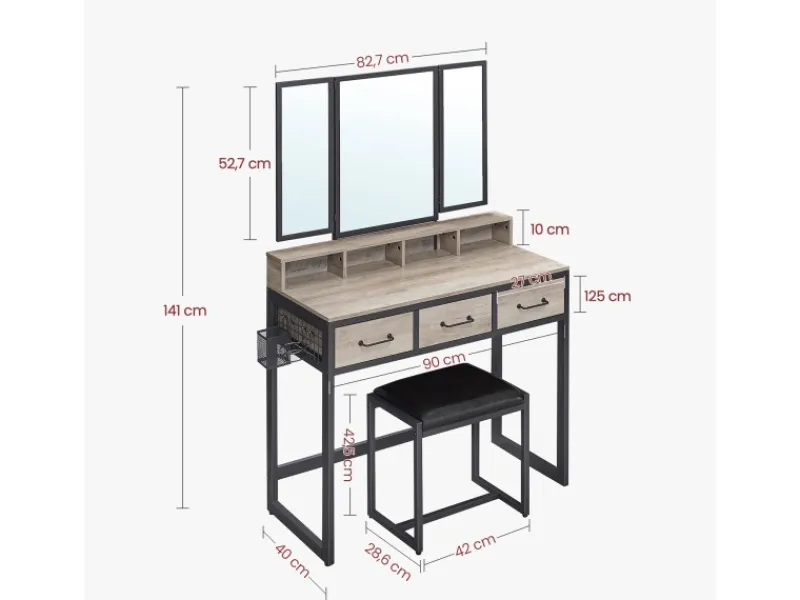 Stabiler Stahlrahmen und hochwertige Spanplatte