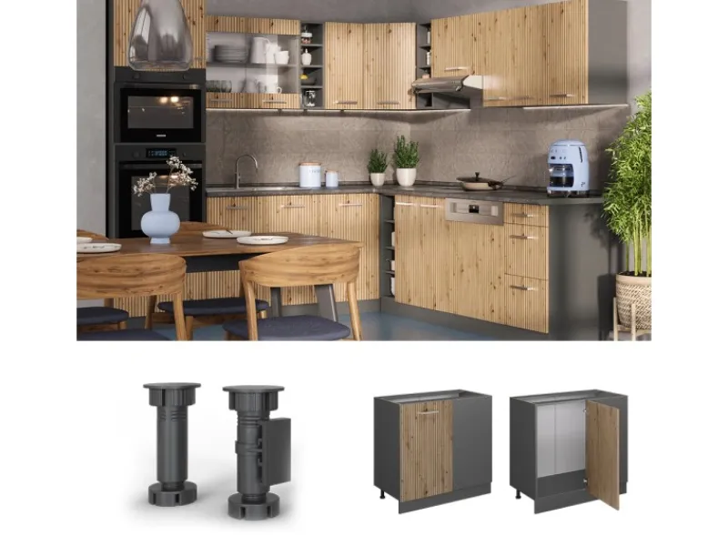 Lieferumfang: Küchenschrank als Bausatz, Montageanleitung, Montagematerial