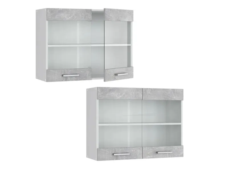 Die Hängevitrine hat Breite 80 cm, Höhe 60 cm und Tiefe 31 cm