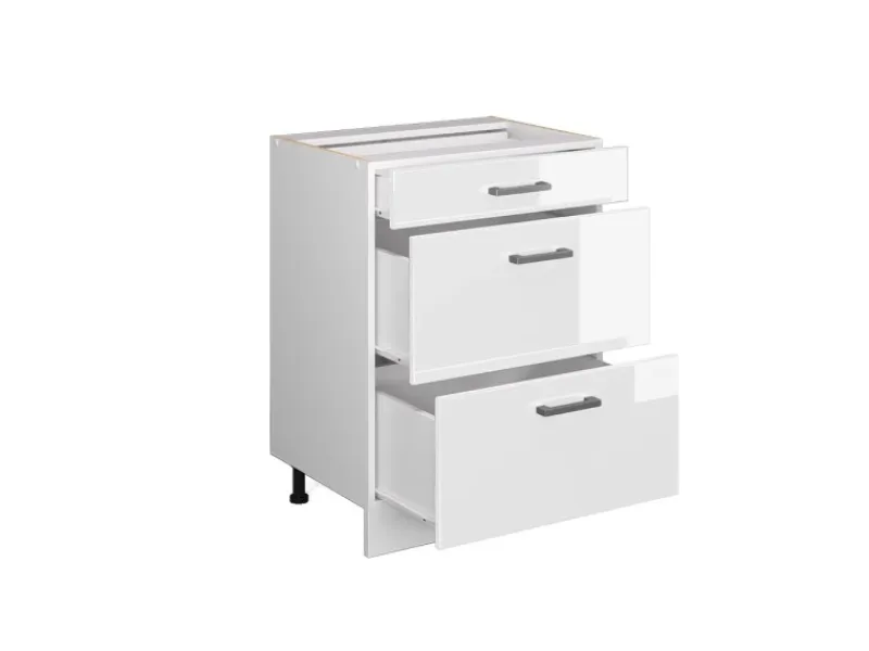 Der Schubladenunterschrank hat Breite 60 cm, Höhe 81,6 cm und Tiefe 46 cm