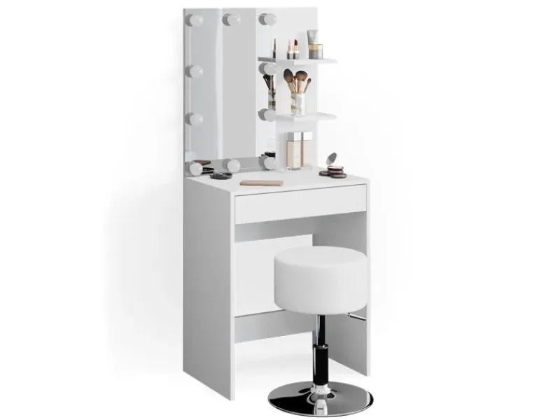 LIEFERUMFANG: Schminktisch, LED-Lichterkette, Hocker, Montageanleitung, Montagematerial
