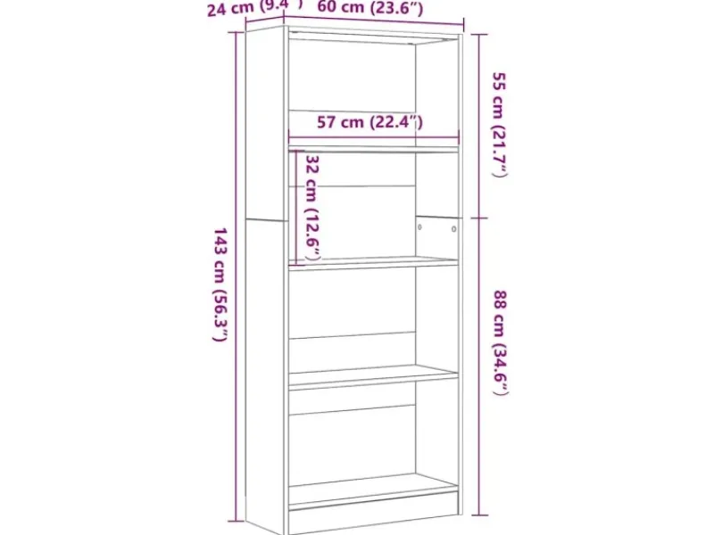 Gesamtabmessungen: 60 x 24 x 143 cm (L x B x H)