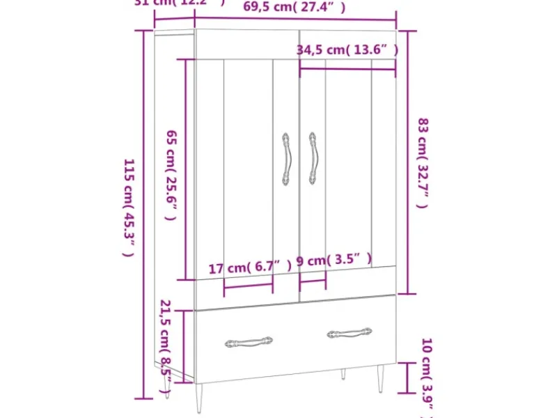 Gesamtabmessungen: 69,5 x 31 x 115 cm (B x T x H)