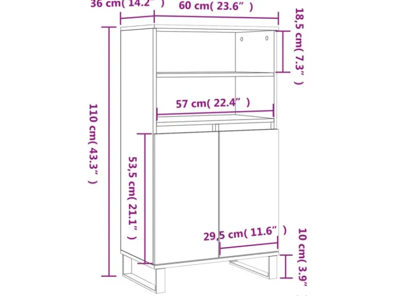 Abmessungen: 60 x 36 x 110 cm (B x T x H)