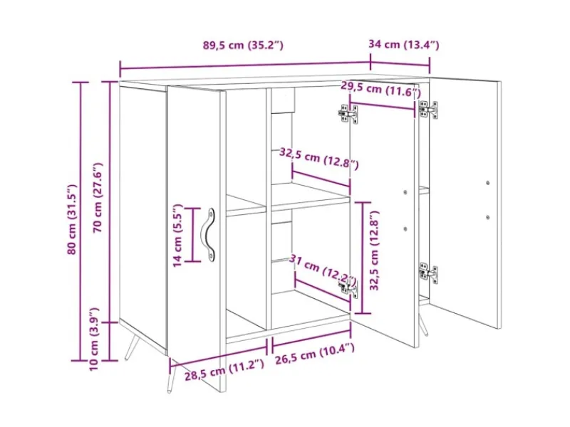 Gesamtabmessungen: 90 x 34 x 80 cm (L x B x H)