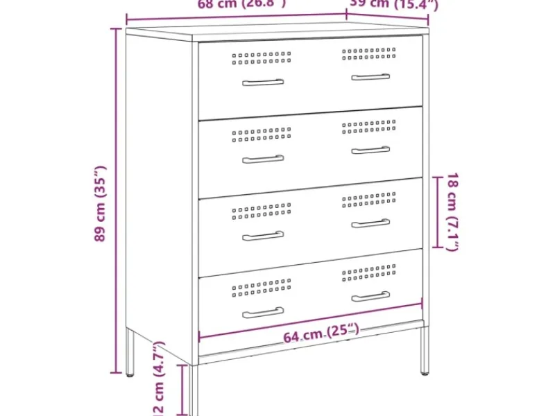 Abmessungen: 68 x 39 x 89 cm (L x B x H)