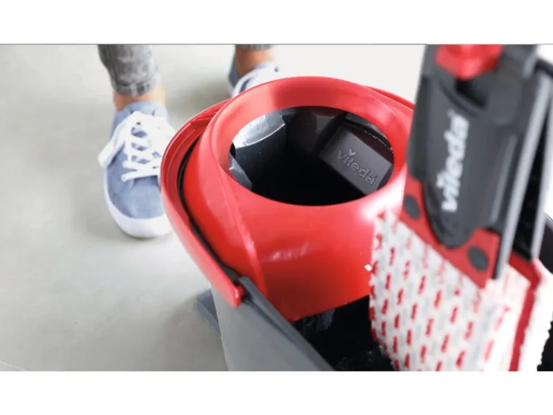 Das Vileda Bodenwischer-Set EasyWring UltraMax Turbo besteht aus dem UltraMax Bodenwischer und einem Eimer mit PowerSchleuder. Die PowerSchleuder hat ein Fußpedal für ein bequemes Auswringen ohne Kraftaufwand. Dies ermöglicht eine Reinigung ohne schmutzige Hände, ohne Bücken und ohne großen Aufwand! Der Schmutz und das Wasser werden einfach in den Eimer geschleudert. Sie können die optimale Feuchte individuell nach dem Bodenbelag bestimmen. Das Set ist mit UltraMax Bezügen kompatibel. Mit Hilfe der Powerzone können selbst hartnäckigster Schmutz und Flecken entfernt werden. Dank des flexiblen Gelenkes reinigt der UltraMax mühelos auch in Ecken und unter Möbelstücken. 3-teiliger Stiel mit 130 cm Länge, Fassungsvermögen Eimer: 5 l.