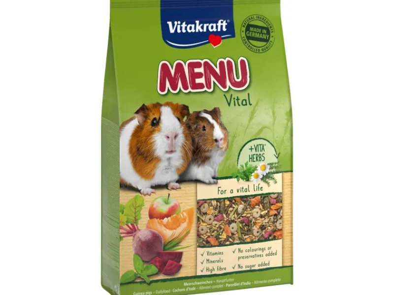 Lebenswichtige Vitamine, Mineralien und Spurenelemente: Zur optimalen Versorgung der Tiere und Vorbeugung von Mangelerscheinungen. Angereichert mit einer Extraportion Vitamin C, einem lebenswichtigen Vitalstoff, den Meerschweinchen nicht ausreichend selbst bilden können.