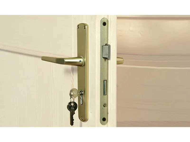 Die hochwertige Rahmen Doppeltür mit dem Durchgangsmaß Breite 143 x Höhe 174 cm inklusive Griffgarnitur mit Profilzylinderschloss inkl. 3 Schlüsseln bietet Ihnen hohen Komfort und Sicherheit.