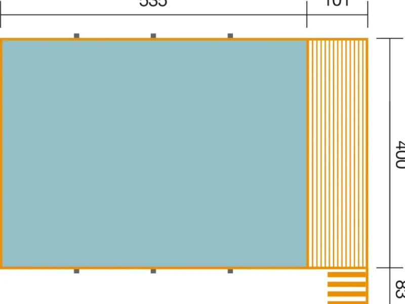– 45 mm starke Blockbohlen mit Nut und -feder, kesseldruckimprägniert = Witterungsgeschützt