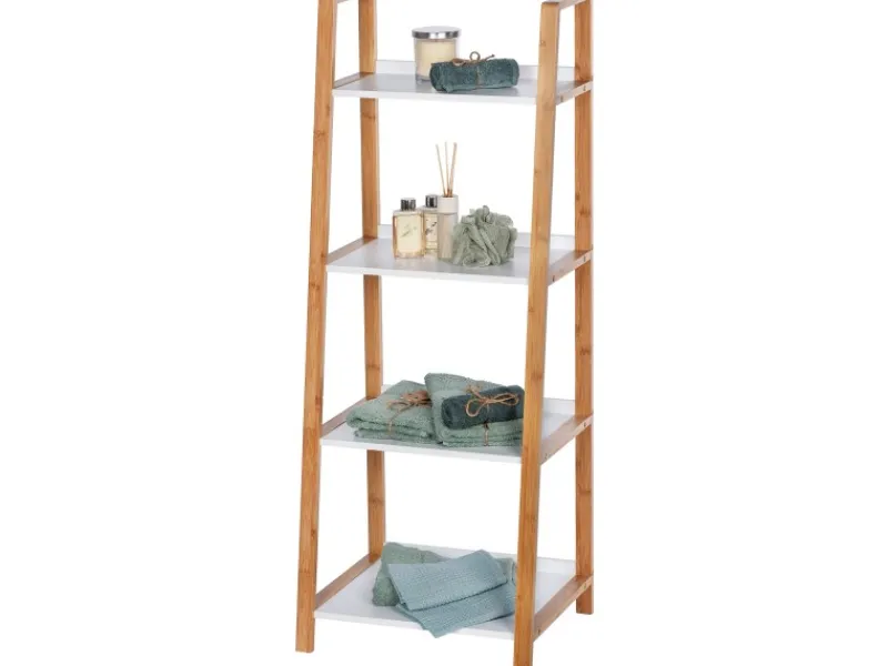 Das moderne Standregal Finja bietet mit seinen vier Regalböden viel Platz für Handtücher, Bücher, Küchenutensilien, Accessoires und Dekoration. Egal, wo Sie das charmante Haushalts- und Badregal platzieren, ob im Bad, Schlafzimmer, Flur, in der Küche oder im Wohnzimmer, das praktische Regal macht immer eine gute Figur und ist vielseitig einsetzbar.