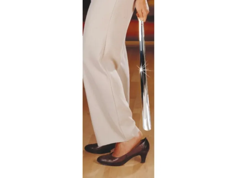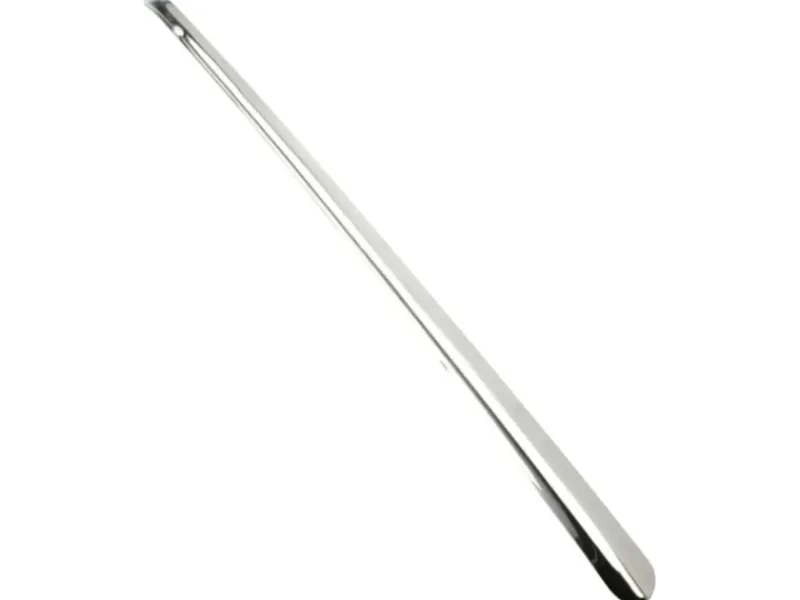 Der Schuhanzieher ist aus hochwertigem, rostfreiem Edelstahl gefertigt. Für ein griffbereites Aufhängen sorgt die praktische, runde Aussparung.