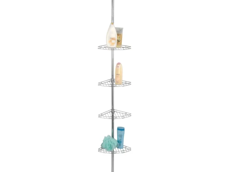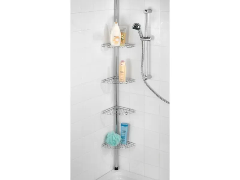 Die hochwertige Teleskop-Duschecke Prea aus rostfreiem Edelstahl ist universell einsetzbar in Duschkabinen, Badewannen- und Zimmerecken. Das praktische Eckregal mit 4 Drahtablagen bietet zahlreiche Abstellmöglichkeiten für Shampoo, Duschbad, Seife, Schwamm und andere Badeutensilien. Die Montage ist schnell und leicht – ohne Bohren, da das Teleskop-Regal einfach zwischen Boden und Decke geklemmt wird. Die Höhe ist variabel, denn die teleskopische Stange ist zwischen 56 cm bis 275 cm einstellbar.