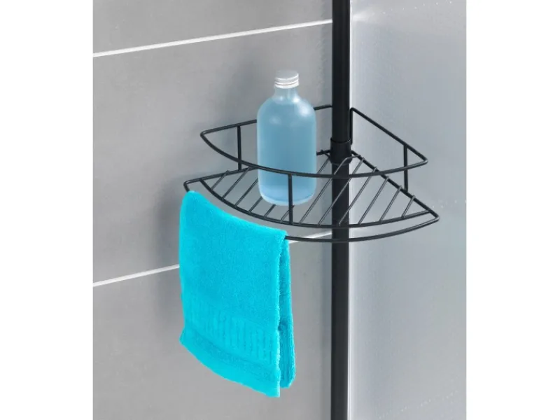 Das praktische Eckregal bietet mit vier Drahtkörbchen zahlreiche Abstellmöglichkeiten für Shampoo, Duschbad, Seife, Schwamm und andere Badeutensilien. Zwei Körbe haben eine zusätzliche Halterung, um Waschlappen einzuhängen.