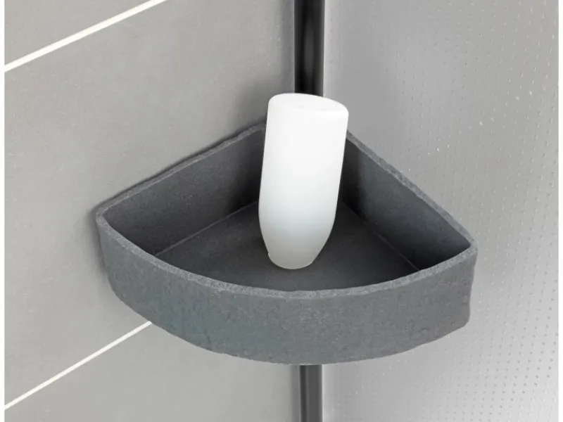 Das hochwertige Material Polyresin sorgt für den besonderen Look in Naturstein-Optik. Das schlichte Design der ausziehbaren Teleskopstange aus rostfreiem Edelstahl in Schwarz ergänzt das Gesamtbild des Eckregals um einen schlichten Akzent. Dank des langlebigen Materials haben Sie lange Freude an dem nützlichen Accessoire. Mit seinen praktischen Abmessungen von 28 cm x 20,5 cm x 275 cm passt das Teleskopregal in Duschkabinen, in Badewannenecken oder ins Badezimmer.