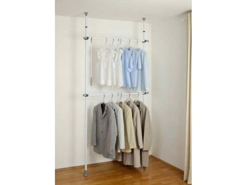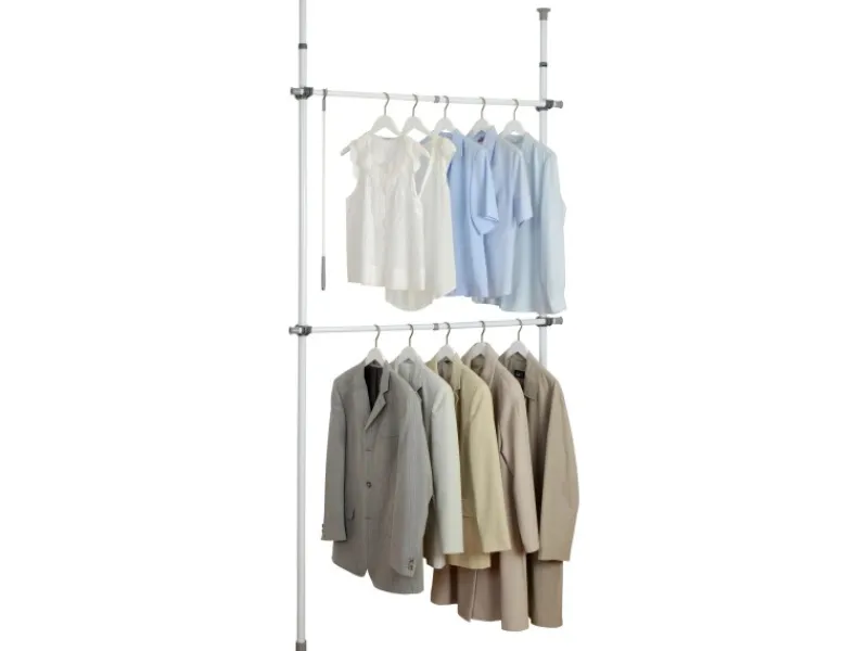 Flexibles Garderobensystem mit zwei Aufhangstangen, inklusive praktischem Kleiderhaken