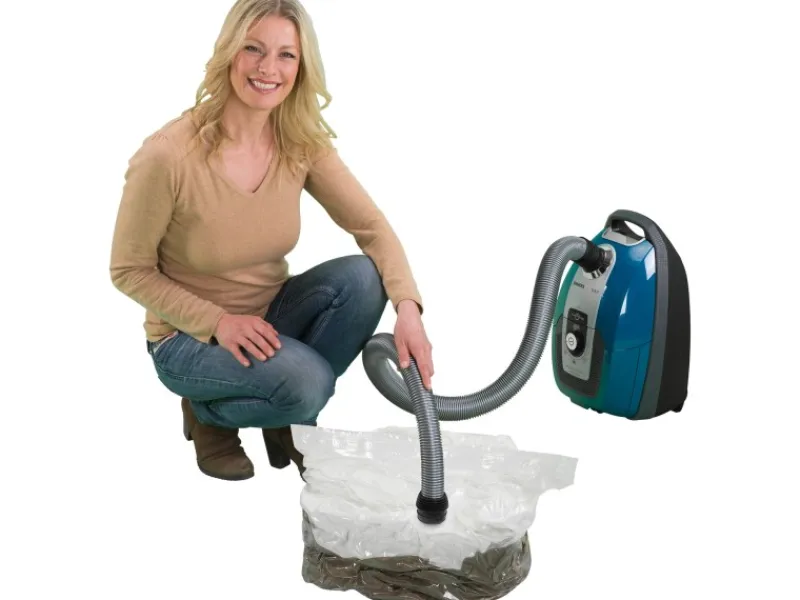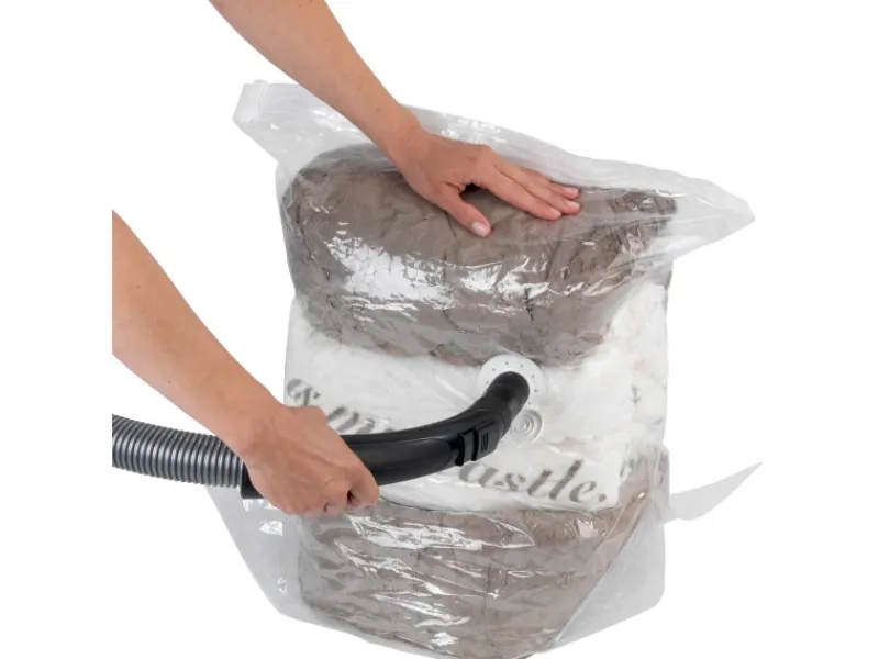 Der Vakuum-Beutel mit der Größe S (60 x 50 x 35 cm) ist mit einer praktischen Standfläche für größeres Fassungsvermögen ausgestattet. Der Kleidersack bietet ideale Aufbewahrungsmöglichkeiten für Saison-Bekleidung oder Bettdecken. Das Volumen der Winter- oder Sommersachen wird auf ein Minimum reduziert. Staub, Nässe und Motten werden in diesem geschützten Behältnis von der Kleidung fern gehalten.