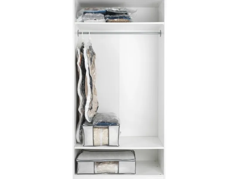 Jederzeit ist eine Übersicht des Inhalts durch die Transparenz des Vakuum-Platzsparers gewährleistet, ohne diesen zu öffnen. Bei Entnahme aus dem Aufbewahrungssystem nimmt die Kleidung wieder das ursprüngliche Volumen an.