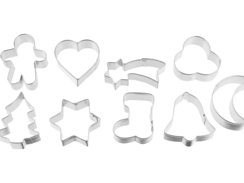 Jede Ausstechform hat eine Größe von 5 cm und ist in Silber gehalten. Der Drahtbügel ermöglicht eine praktische Aufbewahrung der Ausstechformen, wenn sie nicht in Gebrauch sind.
