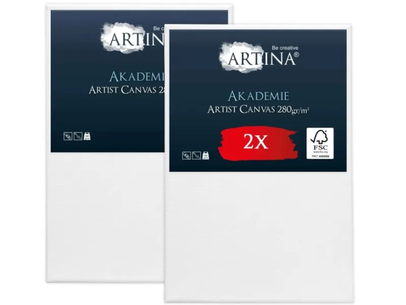 Akademie Leinwand auf Keilrahmen Dieser Akademie Holz-Keilrahmen besitzt eine stabile Rahmenleiste, ist 2-fach weiß vorgrundiert und aus 100% Baumwolle (280g/m²) gefertigt. Sie erwerben einen hervorragend verarbeiteten, trommelhart bespannten und rückseitig umlaufend gehefteten Keilrahmen in Akademie-Qualität. Die gleichmäßige, feinstrukturierte Oberfläche verbessert die Farbaufnahme und verhindert das Ablösen der aufgetragenen Farbe, so dass Sie lange Freude an Ihren Kunstwerken haben. Unsere erstklassigen Akademie Leinwände sind für alle Maltechniken sowie für dicke Farbaufträge bestens geeignet. Details: Marke: Artina Serie: Akademie Material Rahmen: Holz Umlaufend geheftet, trommelhart bespannt auf verzugsfreien und formstabilen Holzleisten Material Leinwand: 100% Baumwolle Grammatur Leinwand: 280 g/m² Oberfläche Leinwand: mittlere, gleichmäßige Gewebestruktur – leicht saugend, feinstrukturiert und strapazierfähig Grundierung Leinwand: 2-fach weiß vorgrundiert – säurefrei behandelt Besonders geeignet für folgende Maltechniken: Acryl-, Ölfarben, Gouache, Tempera, Fingerfarben uvm. Besonderheiten: 4-8 Spannkeile aus Holz zum Nachkeilen im Lieferumfang enthalten