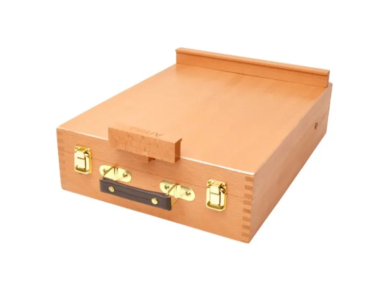 Die Tischkoffer Staffelei ist hochwertig verarbeitet und bietet in seinen 3 unterteilten Fächern viel Staufläche für Malutensilien.