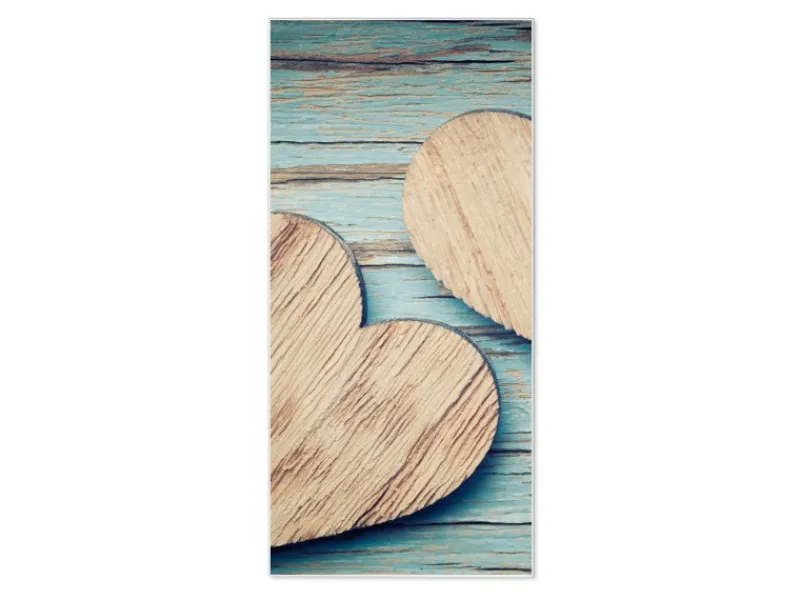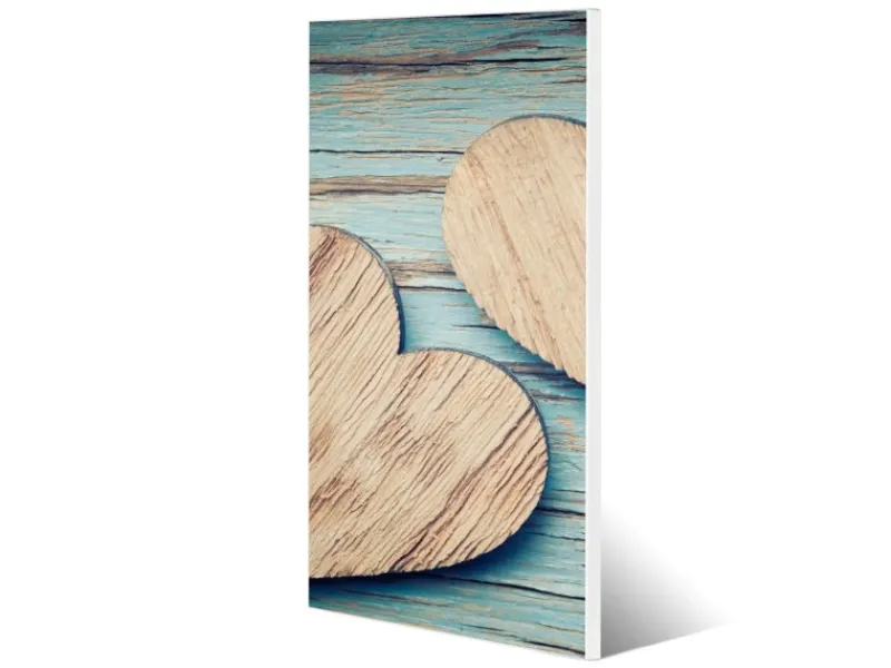 Das Motiv Holz Herzen wird mit einem Schutzlaminat überzogen und ist lösungsmittelfrei.