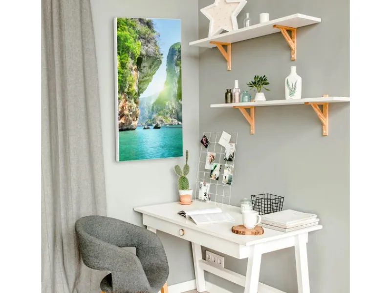 Das Motiv Versteckte Bucht wird mit einem Schutzlaminat überzogen und ist lösungsmittelfrei.