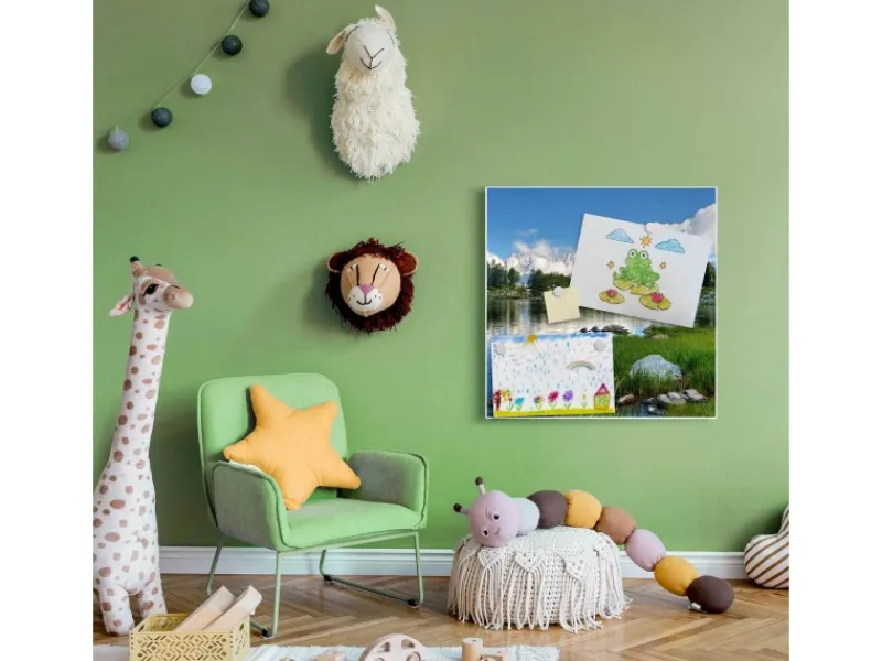 Sie können die Magnet Tafel auch dekorativ als Wandbild nutzen, es halten alle handelsüblichen Magnete daran. Das Komplettpaket aus magnetischer Notiztafel, Montageset & 4 Magneten ermöglicht einen sofortigen Einsatz.