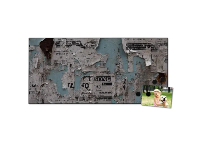 Die Magnet Pinnwand besteht aus schwarz lackiertem Stahl in der Größe 78 x 37cm. Die aufgebrachte Motivfolie ist mit einem Schutzlaminat überzogen, wodurch sie UV-Resistent und stoßfest ist.