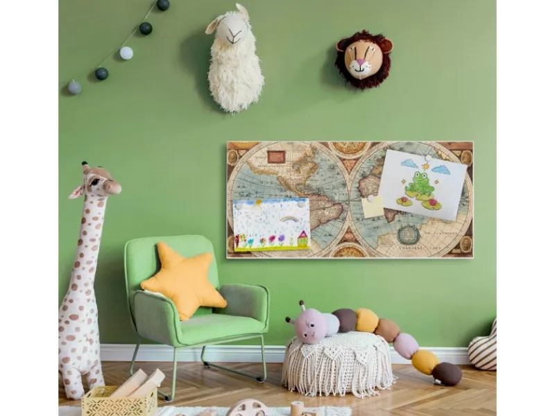 Das Motiv Historische Weltkarte wird mit einem Schutzlaminat überzogen und ist lösungsmittelfrei.
