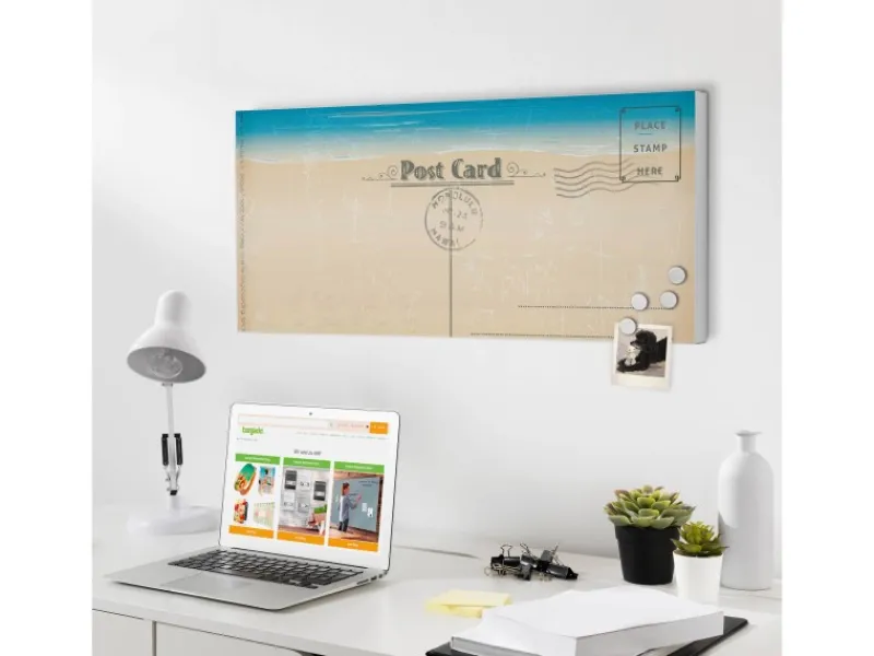 Die Magnet Pinnwand besteht aus weiß lackiertem Stahl in der Größe 78 x 37cm. Die aufgebrachte Motivfolie ist mit einem Schutzlaminat überzogen, wodurch sie UV-Resistent und stoßfest ist.