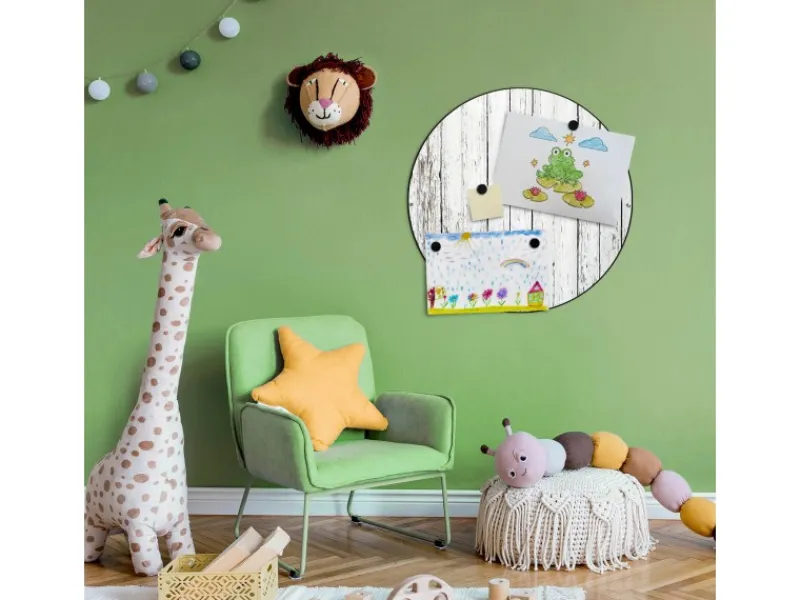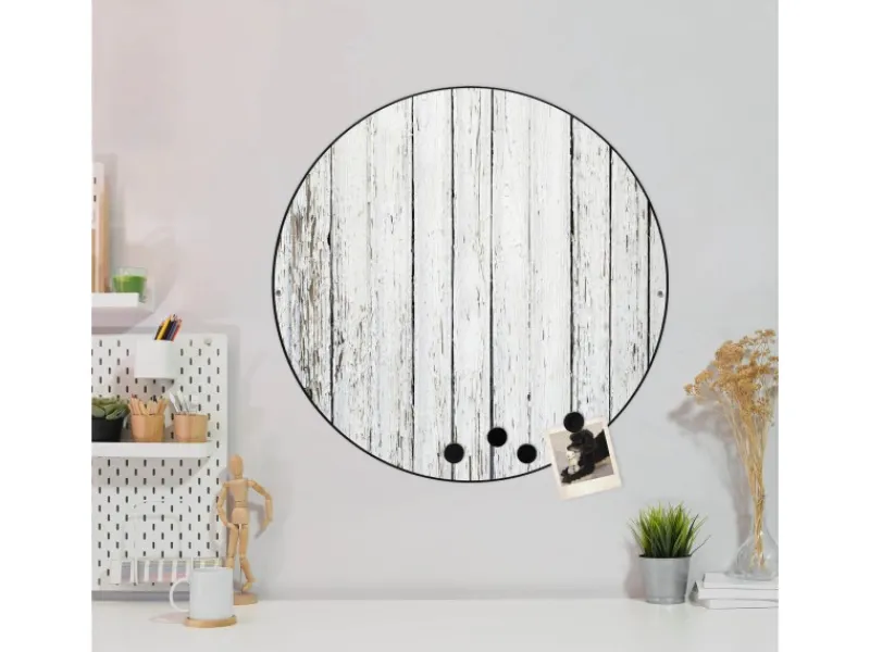 Das banjado Design Vision Board bringt Ordnung in Ihr Zettelchaos. Fotos, Notizen oder Rezepte lassen Sich stilvoll mit den beigefügten Magneten auf der runden Magnettafel. ordnen.