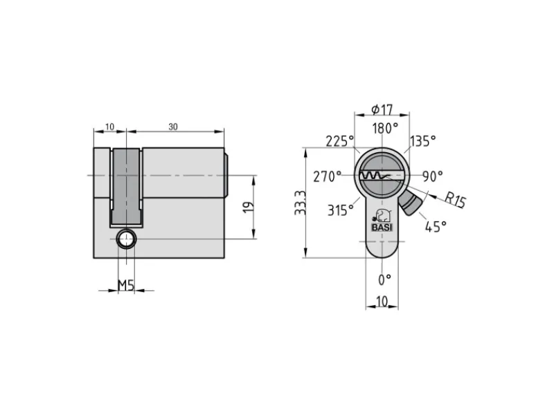 Basi – V55 – Profil-Halbzylinder – 10/35 mm – Gleichschließend