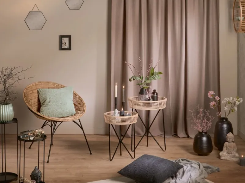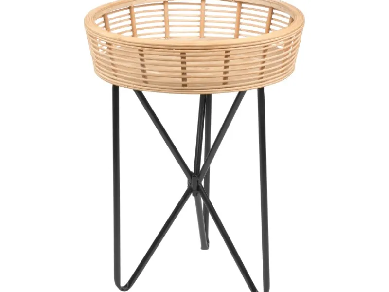 Aus Metall mit tablettförmiger Tischplatte aus Bambus
